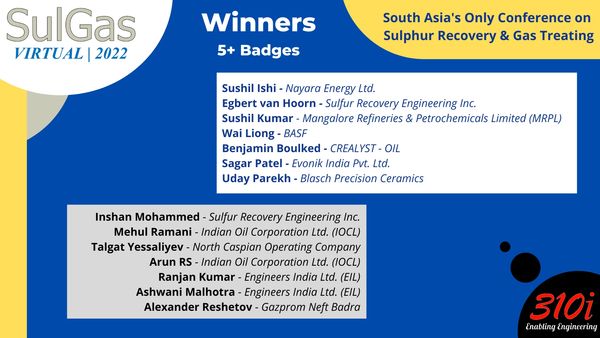 SulGas 2022, 4th edition orchestrated by Three Ten Initiative Technologies LLP (310i), marked a pinnacle in South Asia's landscape for gas treating and sulphur recovery. This virtual symposium, unfolding over four impactful days, convened a global cohort of over 430 delegates from 34 nations. Renowned industry stalwarts—Dow, Evonik, Saudi Aramco among them—headlined 19 expert sessions, illuminating critical themes of decarbonisation, desulphurisation, and digitisation. An interactive platform, fostering engaging discussions and insightful Q&A sessions, became a hub for over 80% of attendees representing major refining and petrochemical titans. SulGas 2022 exemplified collaboration and knowledge exchange, setting the stage for the forthcoming SulGas 2023—a highly anticipated physical event. At 310i Technologies, rooted in Visakhapatnam, India, our commitment to pioneering advancements persists. From high-fidelity digital tools to comprehensive training programs, we propel the industry's evolution. Connect with us at info@the310i.com to explore our contributions shaping the future of this dynamic sector.